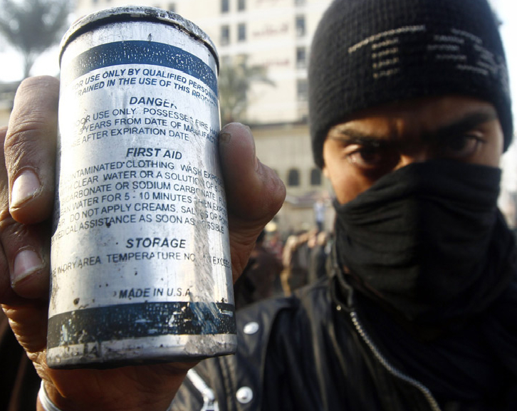 RELATED: Egyptians in the United States protested Friday outside Combined Systems Inc., believed to be the manufacturer of the tear gas used by Egyptian security forces in Tahrir Square.As part of their protests at the Jamestown, Penn. firm, the Egyptians — joined by Occupy Wall Street activists — lay down on the ground and played dead, Egyptian news site Al-Masry Al-Youm reported. Several demonstrators also wore eye patches to show solidarity with protesters in Cairo who lost their eyes from rubber bullets. MORE