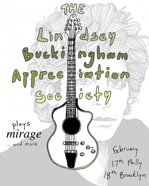 The Lindsey Buckingham Appreciation Society is: Charlie Hall, a vocalist and multi-instrumentalist who has played with Jens Lekman, The War on Drugs, Windsor for the Derby, Tommy Guerrero, and others; drummer Patrick Berkery, who has played with Danielson, Pernice Brothers, Bigger Lovers, Photon Band, Mazarin, and others over the years; Birdie Busch, a Philadelphia-based singer and songwriter with several wonderful solo albums to her credit; bassist Dave Wayne Daniels of The Capitol Years; and vocalist/keyboardist Eliza Hardy Jones and vocalist/guitarist Brandon Beaver, both members of the highly regarded band Buried Beds. Reprising their standing room only performance of Fleetwood Mac’s Tusk from beginning to end back in 2010, TLBAS will perform Mirage at Johnny Brendas tomorrow (Friday Feb. 17) night and Saturday (Feb. 19) at Littlefield in Brooklyn.