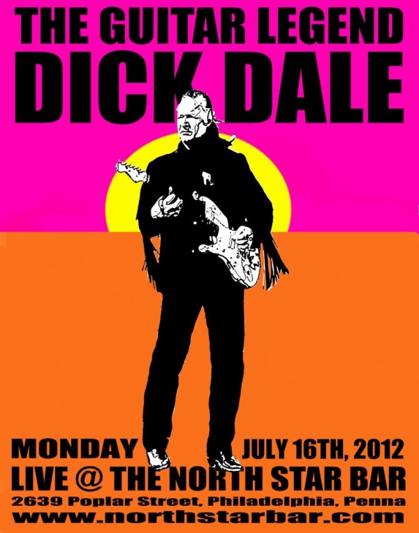 TICKET GIVEAWAY: We have two pairs of tickets to see Dick Dale at the North Star Bar on Monday. The 9th and 10th lucky Phawker reader to sign up for our mailing list (below, right, under the masthead) wins them. Fear not, your email address will NEVER be sold off to third party marketing scum. We promise.