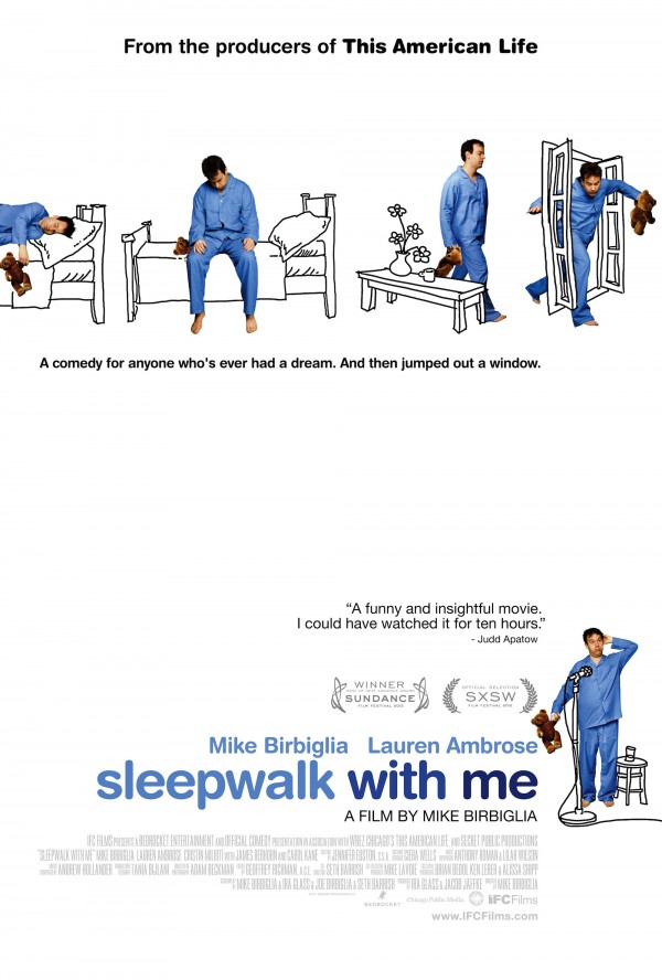 When comedian Mike Birbiglia opened his one-man show Sleepwalk With Me in 2008 at the Bleecker Street Theatre in New York, he didn’t anticipate that it would become material for a popular piece on This American Life and a New York Times best-seller. He especially didn’t think it would turn into a feature film. Birbigilia had never made a film before. And he was initially hesitant to make one about his dangerous sleepwalking condition, because he wanted to distance himself from the topic he had been immersed in for more than four years. Scenes in the movie Sleepwalk With Me — about Mike Birbiglia’s sleep disorder — made him emotional while filming them. The film, also called Sleepwalk With Me, is co-written and produced by This American Life host and creator Ira Glass. It revisits Birbiglia’s account of his troubled relationship with an ex-girlfriend, his experiences as an aspiring comedian and his denial over his REM behavior disorder. Birbiglia now takes medication for the disorder. But, as he tells Fresh Air’s Terry Gross, his anxieties about making the film infiltrated his dreams. “My brain would not shut off when I would go to sleep,” Birbiglia says. “So I would have dreams that I was directing myself in a scene in my bedroom, and that the cameras were rolling, and my wife wouldn’t be asleep yet … and she would walk into the bedroom and I would be adjusting lights, and my wife would be like, ‘What are you doing?’ and I’d say, ‘We’re shooting,’ and she’d say, ‘Um, Mike, we’re not shooting.’ And I’d say, ‘I’m sorry, but we are,’ and the way I would say it was actually sort of patronizing, like she didn’t get it.” While making the film, Glass says he was surprised at how immersed Birbiglia became in the realities of what they were filming, despite the fact that he was playing a fictional version of himself. Birbiglia re-enacts a scene where he sleepwalks, jumps through a hotel window and has to get 33 stitches in his leg. MORE