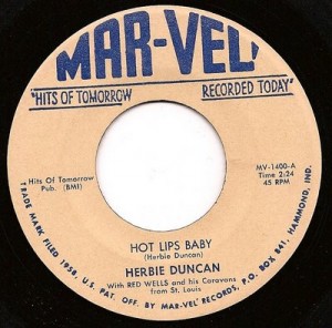 Herbie Duncan contributed two unforgettable rockabilly train wrecks to mid-20th Century America. I write that with affection. Bit by the Elvis bug, in 1958 he cut “My Little Angel,” where he croons/rocks about the object of his desire in a wavering, inarticulate style that sounds like the King channeling Tiny Tim. Backed by a chintzy band on autopilot disengaged from Duncan’s passion and cliched lyrics, the song is unforgettable, and the “bop bop bop bop bop bop a buh boo” at the end sends the song into the stratosphere. “Hot Lips Baby” is in trouble from the get-go and yet is totally captivating. “Oh oh oh baby,” Duncan writhes, “you are oh oh oh so mean”, then “so keen.” His heart just flips from “a-kissing her hot lips.” Duncan’s last vestiges of self-control succumb to 100% pure babbling enthusiasm and lust. His final raspy vocals veer way off key but, dammit, he’s singing straight from his groin and rocking like nobody’s business. Thing is, you don’t laugh but break into a big smile. Herbie was undeniably inspired, he wanted to be famous, surely he wanted to get laid, he HAD to rock and, talent be damned, he got into the studio. And despite an obvious lack of talent, his enthusiasm was not in the least watered down. We should all have the heart and panache of the incredible Herbie Duncan. –BRIAN GORDON