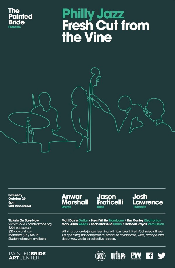 BY ZIVIT SHLANK JAZZ CORRESPONDENT With full-time jazz clubs closing and limited space on your radio dial, it takes an unwavering devotion to present jazz. Started by a collective of artists fresh out PAFA, The Painted Bride started in 1969 with the mission of providing a welcoming space for artists and musicians of all colors, cultures and styles to be heard. The Bride’s Jazz On Vine series is no exception. Thanks in large part to music curator Lenny Seidman, Jazz On Vine is celebrating its 40th year, making it the longest running, ongoing presenter of jazz in Philadelphia. In that time span, Jazz On Vine has seemingly hosted just about every major voice in modern jazz, both on a local and global scale. Recently, Seidman has been taking stock of such an incredible legacy, which beckoned the question “What’s next?” He decided to look no further than the Bride’s hometown. The future of Jazz is blossoming right here in our musically rich soil. Tonight, the Painted Bride presents Philly Jazz: Fresh Cut From The Vine, a 10-piece ensemble composed exclusively of homegrown talent. At the helm are three of Philly’s most passionate and promising musical voices: bassist Jason Fraticelli, trumpeter Josh Lawrence and drummer Anwar Marshall. The program will consist of original works composed by all three. Phawker recently hung out with the guys at Paris Wine Bar to break bread and discuss.