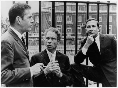 Years later, after Duchamp himself chose the piece’s location in the Philadelphia Museum of Art in 1953, the work inspired a new generation of Dada-influenced artists, specifically soon-to-be lionized painters like Jasper Johns and Robert Rauschenberg, avant-garde composer John Cage [PICTURED, BELOW LEFT] and choreographer Merce Cunningham. Dancing Around The Bride is a multi-media exhibit that attempts to explain, evoke and expand the creative dialog between these titans of 20th Centry art. Running concurrent with exhibit at PMA is Bowerbird’s BEYOND SILENCE, a month’s long series of concerts that bring to life many of Cage’s rarely performed pieces and combine them with Cunninham’s choreography in often unexpected settings (SEE the press release below for a complete listing of upcoming performances).