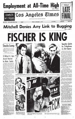 TIME: Bobby Fischer was only 29 when, in the midst of the Cold War, he defeated the Russian defending champion Boris Spassky in the World Chess Championship on September 1, 1972, ending 24 years of Soviet dominance in the intense, rarefied realm of big-league chess. The match, held in Reykjavik, Iceland, was a massively hyped event — “The Match of the Century” — with a build-up worthy of a Super Bowl or the Olympics and the sort of pre-battle media conjecture usually reserved for heavyweight title bouts. Which, in a sense, the match was.