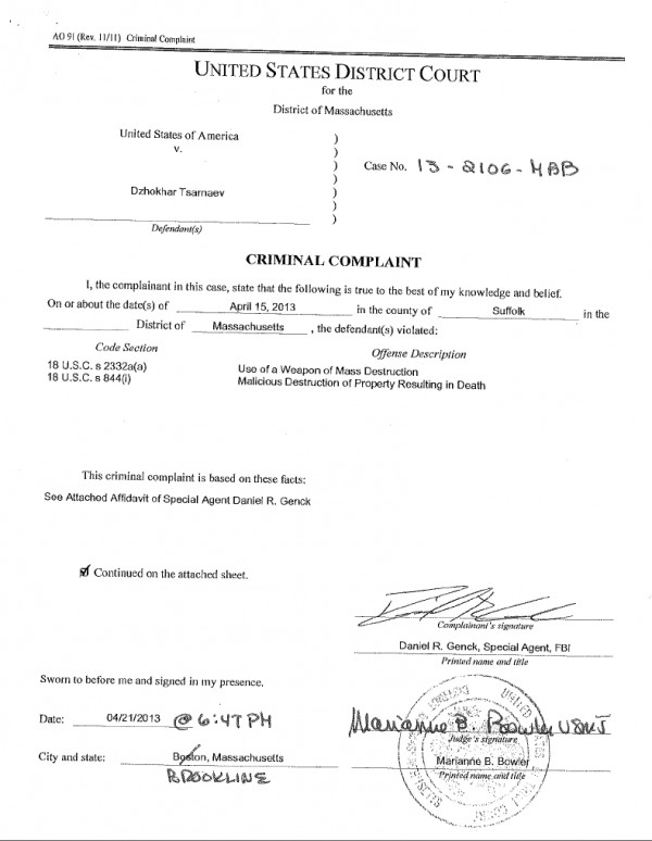 HOT DOCUMENT: The United States Of America Vs. Dzhokhar Tsarnaev