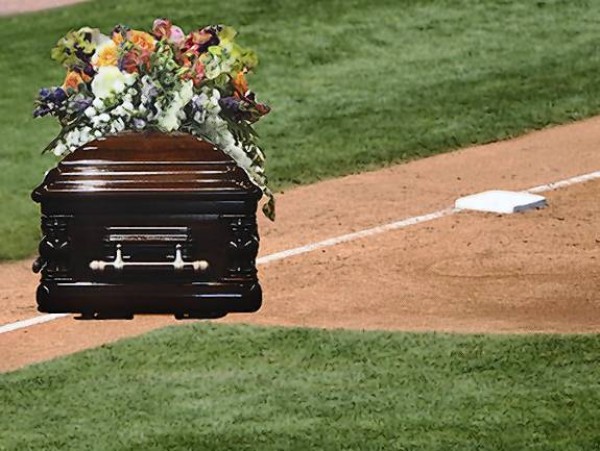 Given that it’s where I got my start in journalism, it is with a heavy heart that I mock this hamfisted photoshop of a coffin stealing third base [pictured above] in today’s Morning Call, the paper of record in Allentown — my hometown. Not sure which is sadder, or more emblematic of just how bad things have gotten: That this ludicrous photoshop looks like the punchline to a question the Onion never bothered to ask or the fact that the Lehigh Valley IronPigs, the Fightins’ Triple-A affliate, are giving away a free funeral the way other ball clubs give away bobbleheads or mini bats. From today’s edition of the Morning Call:
