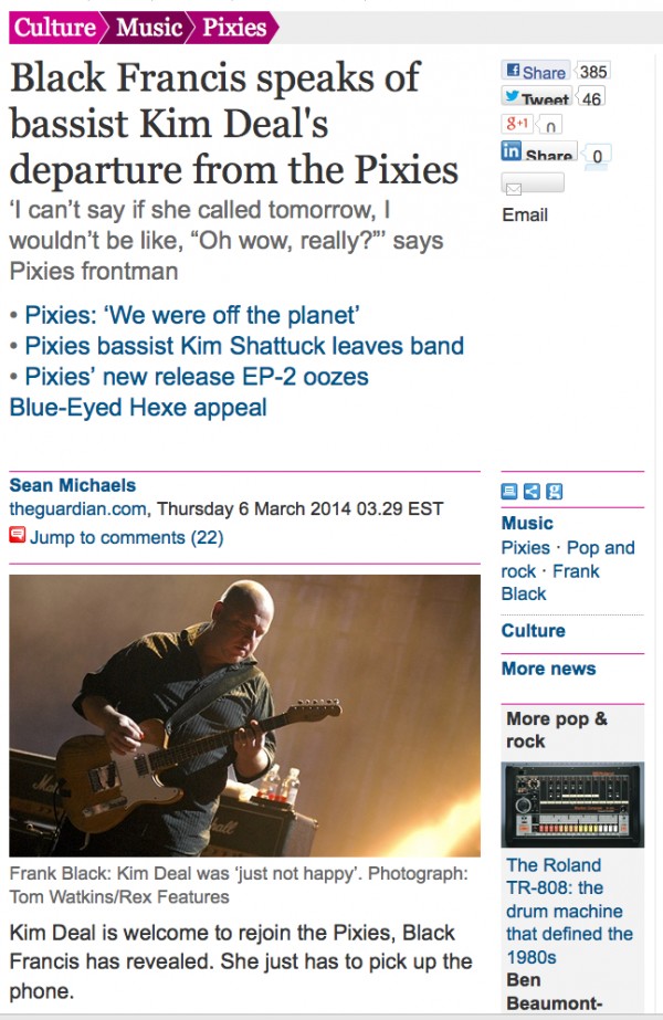 MEDIA: The Guardian Hypes The Kim Deal News In Phawker Editor’s 7,000 Word Black Francis Q&A
