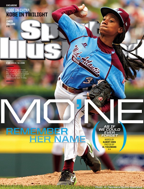 INQUIRER: Sitting in his hotel lobby, 20 miles from the stadium, Davis’ stepfather takes a phone call. “Are you serious?” asks Mark Williams, who has been part of the family since Mo’ne was 6. On the phone is coach Steve Bandura, whose son Scott plays for Taney. The girl, he says, will be on the cover of the next Sports Illustrated. The first Little Leaguer ever. Williams shakes his head, drags a hand over his face, and smiles. This is the same girl who used to cry when her mother braided her long hair at age 6; whom he took to Dick’s to buy her first bat at age 10; and who now, barely a teenager, has a deep love of basketball shoes. Now there are Sports Illustrated, e-mails from eager screenwriters, and calls from University of Connecticut women’s basketball coach Geno Auriemma, who heard Davis express interest in playing on his team someday.