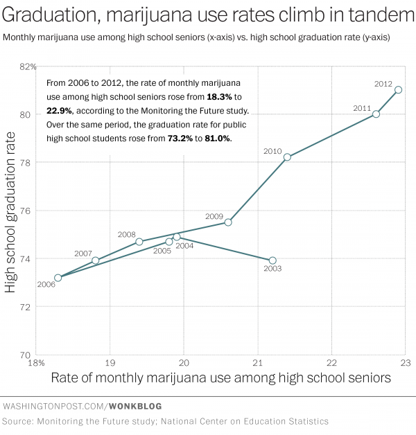 From 2006–2012 High Schooler Marijuana Use Increased 4% And Graduation Rates Increased 8%