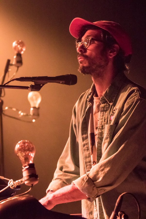 Yoni started the set with “Easy,” a song from the latest Moh Lhean that contains essential Why? themes like suicidality, and can even be read as a continuation of “Simeon’s Dilemma” from 2008’s seminal Alopecia, where Yoni is now seeing the girl he once stalked on his shitty one-gear bike through the rear window of a limousine, an expression of his improved self-esteem and renewed appreciation for life. The stage was riddled with Edison light bulbs, their glowing filaments serving as reminders of the ideas ad infinitum that permeate the atmosphere. Or maybe they were just there because they looked cool. Anyway, about halfway through the set, around the time that girl wearing the Wayne’s world t-shirt sparked her second joint, Yoni left his post behind the drum set, picked up a bass, and started playing a hand-picked selection of songs from the Why? discography. He drew heavily from Alopecia, playing the first five songs from the album, save “Good Friday,” but also sharing gems like “Strawberries” from the 2012’s critically-trashed Mumps, Etc., in which the “I am not okay” refrain of the chorus echoes one of the essential sentiments of classic Why?