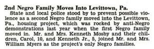 “I look back on it as not a bad time in my life. With all of my schooling [two master’s degrees], I would never have learned as much about human nature as I did then, and I wouldn’t have met such fine people like Martin Luther King, Pearl Buck and Jackie Robinson.” All of them, and many others, wrote to Myers and her husband, William E. Myers Jr., during their several-week ordeal in what had been an idyllic suburban, and white, community of 17,311 houses the largest planned community in the world. Today, it is still a mostly white town of about 60,000 residents.