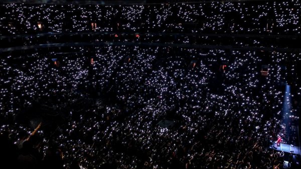 Although this was the DAMN Tour, Lamar made sure to play tracks off of his last three albums including “Swimming Pools,” “Money Trees,” and “King Kunta.” Without missing a beat, the crowd, feverishly rapped along to every lyric – including the white kids who had no qualms about dropping the n-word. Despite being a lone performer with no band, backup singers, or DJ in sight, Lamar kept his fans interested with multiple visuals playing on the main large screen. These videos ranged from a rottweiler growling at the camera while “Loyalty” was being performed to a woman with an Afro (that didn’t quite resemble that of Richard Pryor’s) laying spread eagle in front of Lamar with a glowing vagina to the colors of the American flag changing into the lights on a cop car. There were also a handful of martial arts demonstrations, one of which ended with Lamar rapping while hanging sideways from the ceiling.