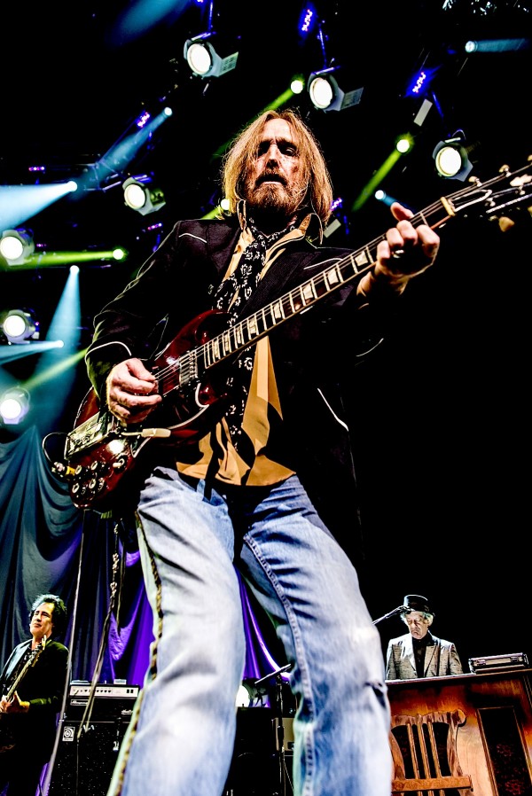 I was in the sixth grade the first time I saw a picture of Tom Petty. He looked like a stick with blond bangs and lidded rabbit eyes. I was fairly certain he was going to die soon. Turns out he was just high. In October he turns 64 and having learned a thing or two about longevity over the course of the last 40 years, I’m pretty sure he’s never gonna die. Which would be just ducky with me and the 20, 000 people who showed up at the Wells Fargo Center — home of the $10 Stella and the $7.75 slice of pizza — last night. The band threw me at first — a bearded-and-dreadlocked Al Jourgensen on lead guitar? Barney Fife on rhythm guitar? Bryan Cranston in a Conway Twitty wig on bass? Far fuckin’ out, man! Turns out that was Heartbreakers — a dreadlocked Mike Campbell, Scott Thurston, and Ron Blair, respectively — one of the deadliest and unstoppable killing machines ever assembled in the name of rock and/or roll. Critics have crowned Springsteen the bard of the common man, but I would argue that Petty holds the keys that set the working man free from their cages on a Friday night for a few hours of beery elation and the occasional skyward fist pump. A lot of men climbed down off a lot of ladders to be there last night, my friend. And unlike Springsteen’s audience, no Tom Petty fan ever voted Republican. Anyway, how did they sound? Deathless. Petty was in fine voice, his reedy Dylan-esque drawl as withering as ever. The band alternately roared and purred, with surgical precision. The setlist alternated between choice cuts from the snarly/bluesy just-released Hypnotic Eye and the songs that anchor the soundtrack of our lives: “Refugee,” “Don’t Come Around Here No More,” “I Won’t Back Down,” “Runnin’ Down A Dream,” “Free Fallin’,” “Yer So Bad,” “Learning To Fly,” and an endorphin-triggering cover of The Byrds’ “So You Want To Be A Rock N’ Roll Star.” Near the end, they brought out a mutton-chopped Steve Winwood, the tour’s opening act, to kill it on The Spencer-Davis Group’s white soul classic,“Gimme Some Lovin’,” which, judging by the crowd’s reaction, was sort of like bringing out Ferris Bueller to do “Twist And Shout.” They closed out the night with a searing, anthemic “American Girl,” the song that, more than anything any president or soldier or superhero has ever done in the name of public service, makes me proud to be born an American boy. Unlike so many of his rusting peers from the fast-vanishing Golden Age Of FM, Tom Petty never got old, he just became a classic. — JONATHAN VALANIA