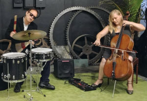 JANET SCHIFF: Okay cool, because Victor DeLorenzo [founding drummer of the Violent Femmes] and I are inspired so many by different types of music. We listen to music all the time and are the best of friends, and consider this our life’s work where everything we’ve done is leading us to this. We’re using everything we can come up with, from our music to our history, and inspirations. We’re having a blast. There are times when I’ve collaborated with other visual artists or musicians, where we’re reading the music of a paintbrush that a painter is performing with. We’ve performed a sculpture actually, and paintings. We’ve had the opportunity to share our music in so many different venues, museums, galleries, theaters, art centers. So it’s great to be able to bring those experiences with us. I actually started out writing sonata form, and that was when I was 19. I had a car accident that made it quite hard to read sheet music, so I started kind of jamming on the cello. What I had done previously was take songs from the radio—and I’m influenced by all types of music as I’ve said—but at the time it was some pop and industrial and, and I would kind of