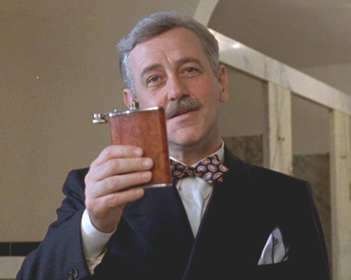 Mayhew, by contrast, is an august failure—a genteel mess, a drunk with dignity. Mahoney imbues Mayhew with courtly grace through the smallest of gestures; during his prolific vomiting in the bathroom stall, Mayhew kneels on a silk pocket square, which he then tucks back into his suit with a practiced flourish. “Sorry about the odor,” he says to Barton, with a warm conviviality. As he takes in Barton’s subsequent gushing over his novels, Mahoney gives Mayhew a tight smile that conveys both his inurement to fanboys and the slightest hint of shame at his own lapsed greatness. Mayhew is charming and wittily composed in the way that every boozehound fancies themselves. He even makes his alcoholism sound noble: “I’m buildin’ a levee,” he tells Barton later. “Gulp by gulp, brick by brick. Raisin’ up a levee to keep that ragin’ river of manure from lappin’ at my door.”