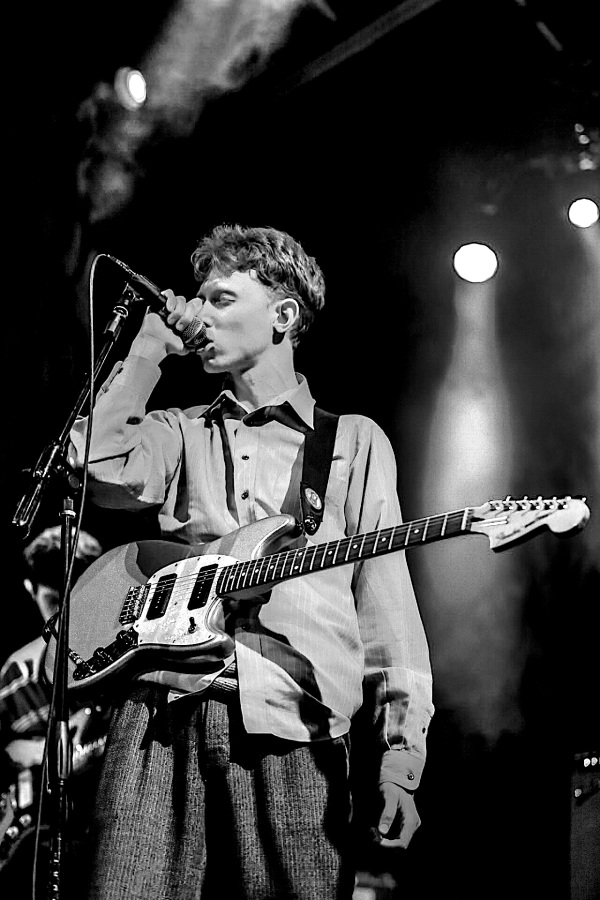 The crowd elbowed and thrashed in a violent mosh pit to heavier songs like “Emergency Blimp” and “Dum Surfer,” while Archy narrated the maelstrom with a disaffected growl, chest heaving as though an invisible hand was wrenching the words from his throat. A saxophonist with a bowl haircut took long, meandering solos over the thrumming bassline. “Baby Blue” was infused with a drowsy euphoria, the audience swaying contentedly, strangers brushing shoulders. For “Biscuit Town,” Archy hunched over a red keyboard, plunking out riffs with a tripping ease. “You’re shallow waters, I’m the deep seabed / And I’m the reason you flow / I got more moons wrapped around my head and Jupiter knows,” he murmured from some watery, sunken depth.