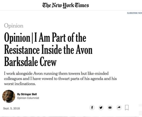GOD LEVEL TROLLING: In Stringer Bell We Trust by: PhawkerPosted on: September 6, 2018December 29, 2024 via @JoshTerry RELATED: I’m Part Of The Resistance Inside The Trump Administration